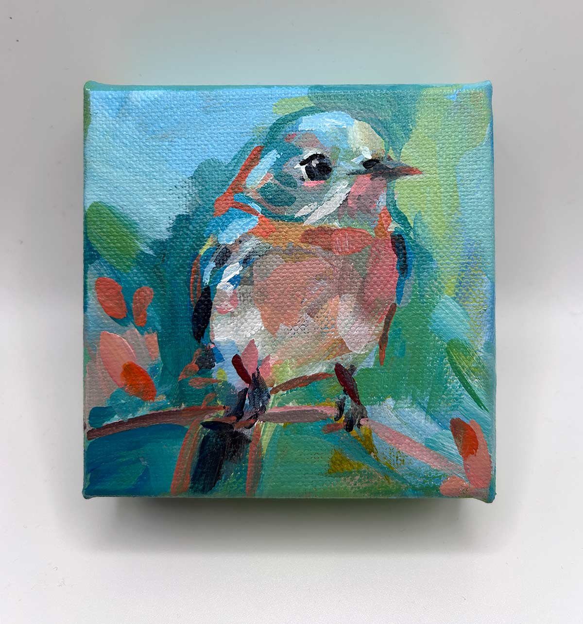 Blue Mood No. 2 – 4x4" eastern bluebird painting