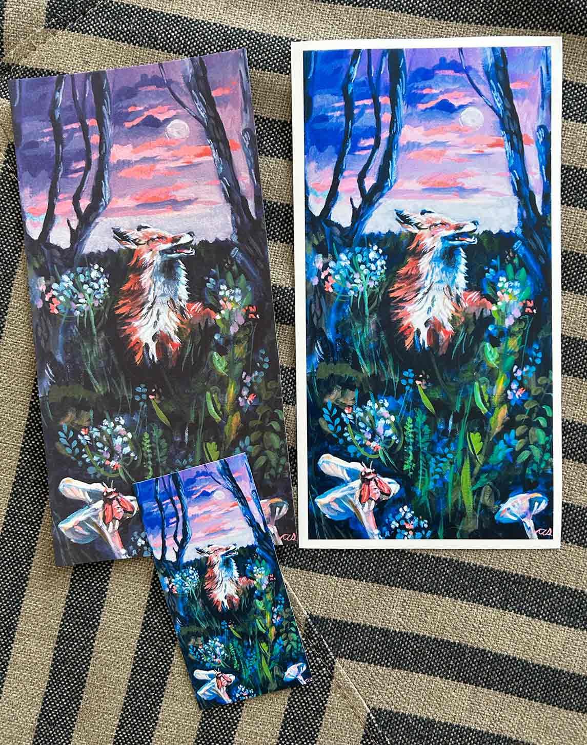This listing is for a cutie pie print pack off of the fox in the moonlight "Moon Bath" painting. It includes: